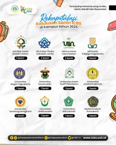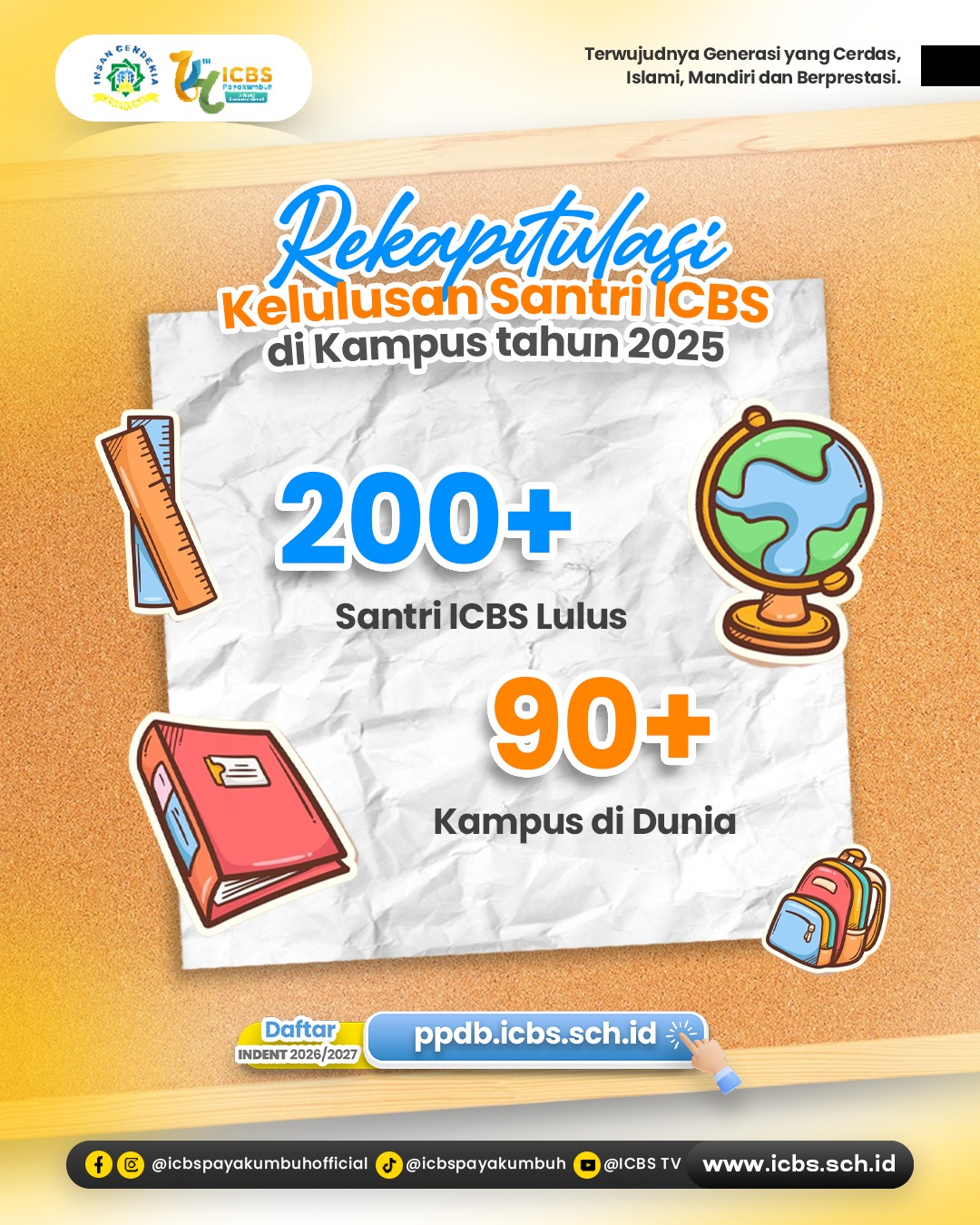 Kabar membanggakan Lebih dari 200 santri ICBS tahun ini telah lulus kuliah dan diterima di 90+ kampus terbaik dunia, baik dalam maupun luar negeri!