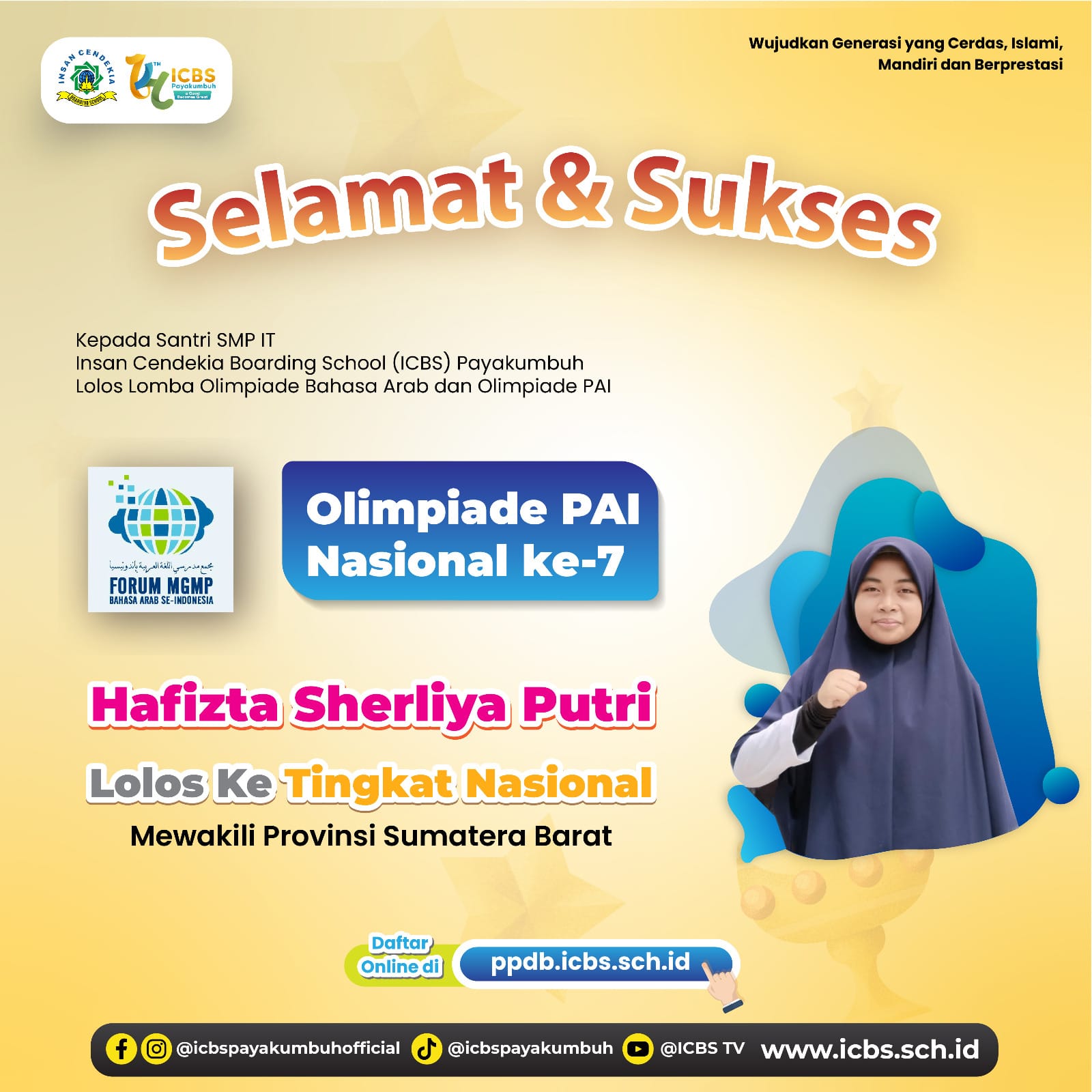 ✨ Hafizta Sherliya Putri – Lolos ke tingkat nasional mewakili Provinsi Sumatera Barat dalam Olimpiade PAI Nasional Ke-7