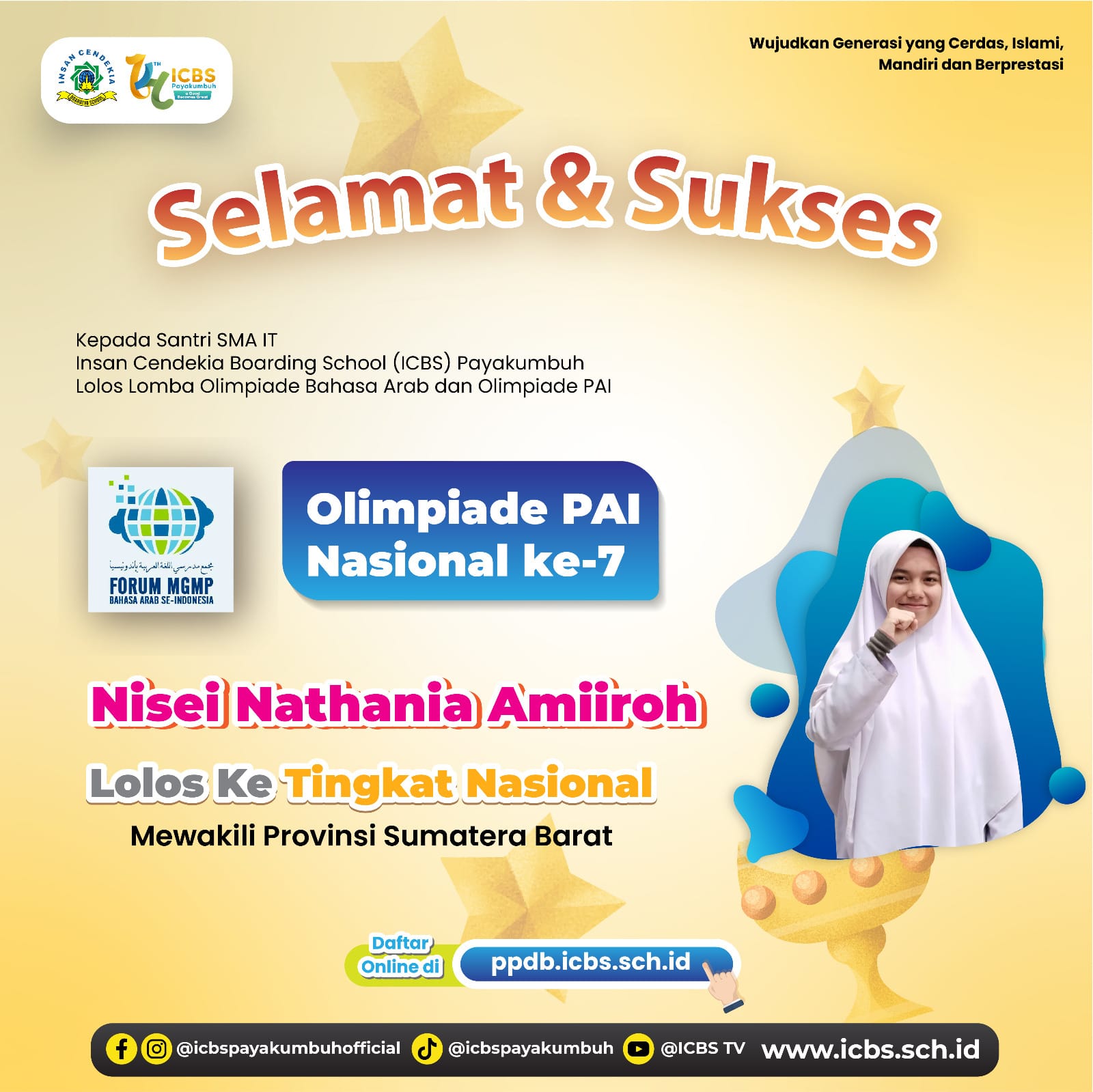 ✨ Nisei Nathania Amiiroh – Lolos ke tingkat nasional mewakili Provinsi Sumatera Barat dalam Olimpiade PAI Nasional Ke-7