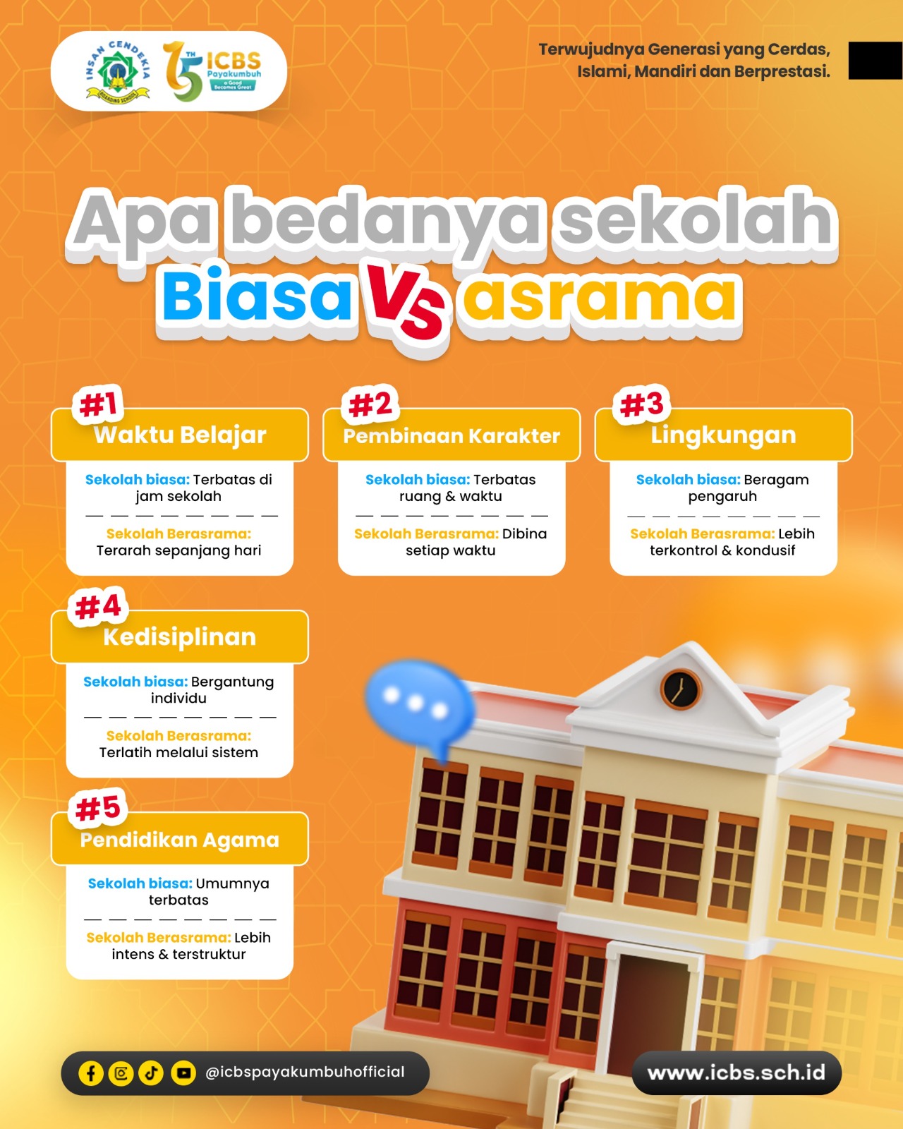 Setiap pilihan tentu punya kelebihan, tapi di ICBS Payakumbuh, sistem boarding school hadir untuk memberikan pembinaan yang lebih menyeluruh—bukan hanya akademik, tapi juga karakter, kedisiplinan, dan nilai keislaman 🌙📚 Dengan …