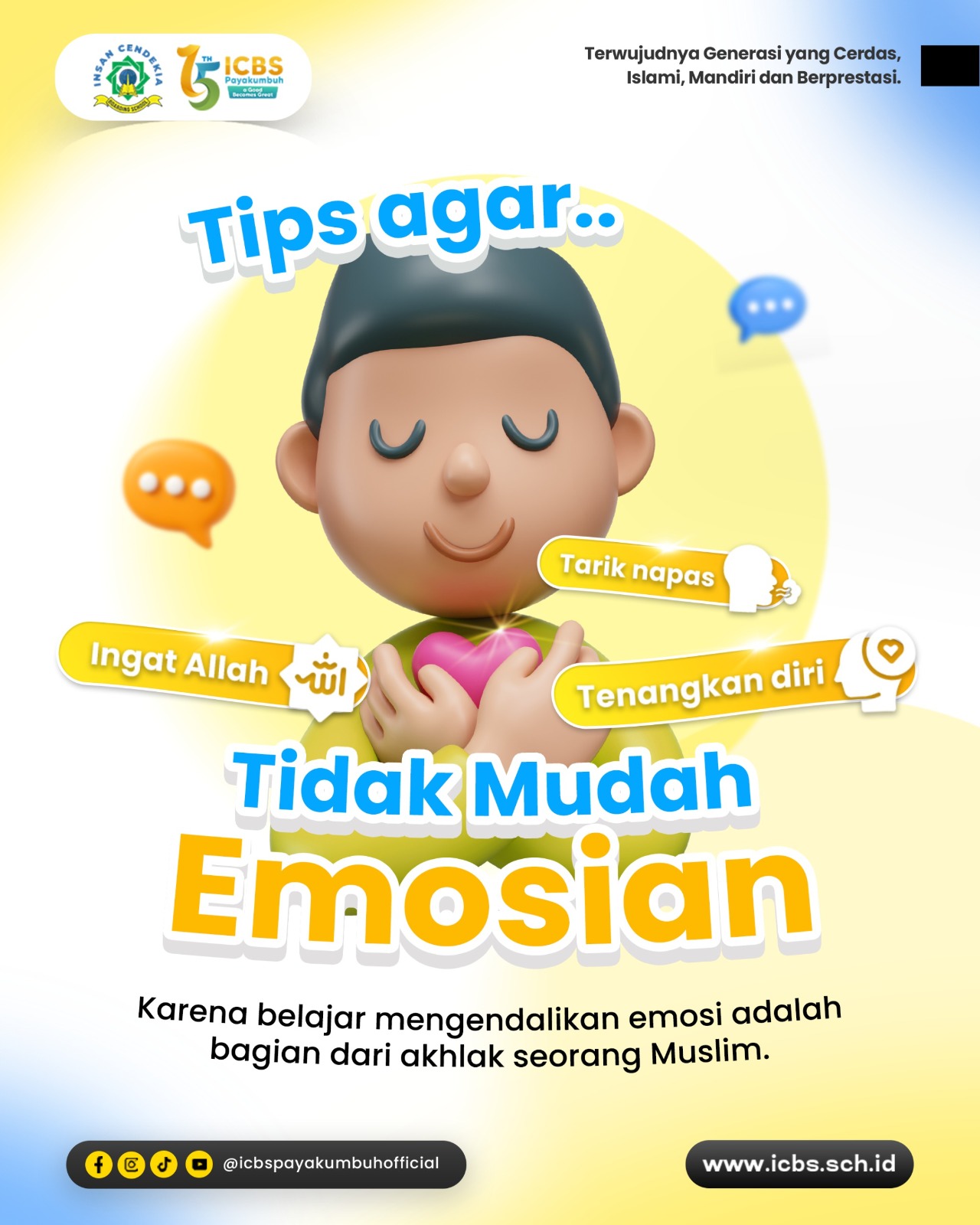 Di ICBS Payakumbuh, santri dibimbing untuk mengingat Allah, menenangkan diri, dan mengendalikan emosi sebagai bagian dari akhlak seorang Muslim 🤍
