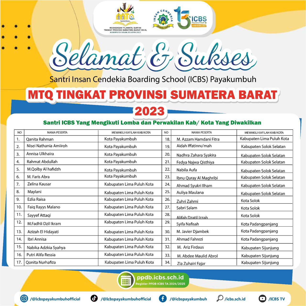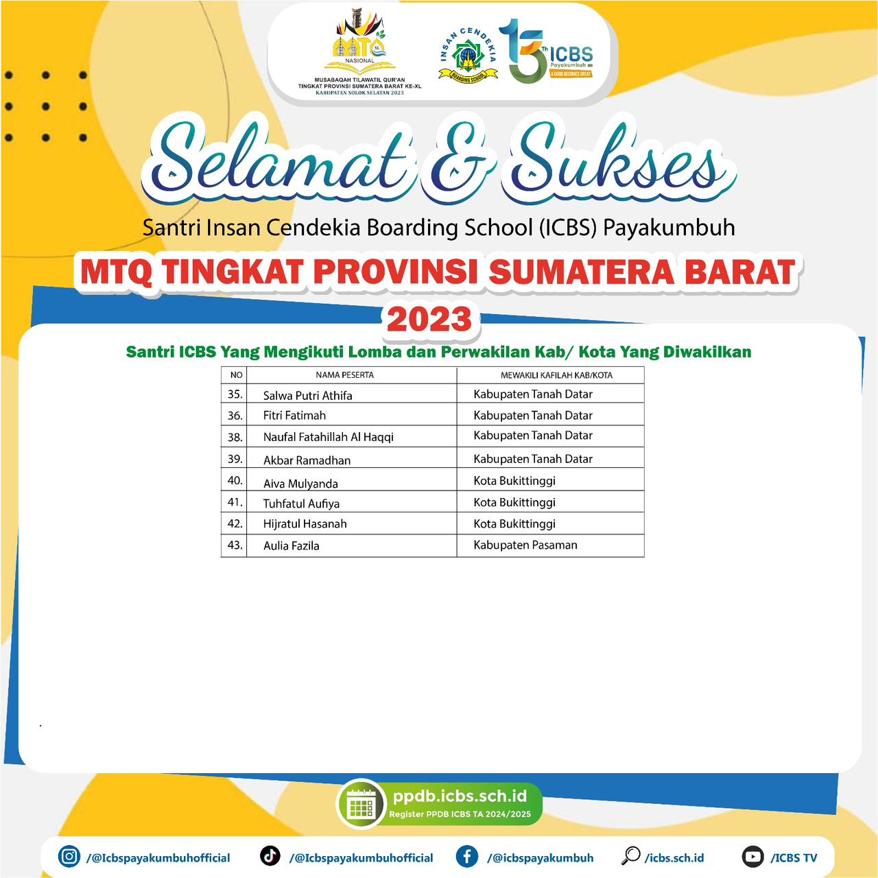 ICBS memberangkatkan 43 santrinya terbaiknya dalam mengikuti MTQ ke 40 tahun 2023 di Kabupaten Solok Selatan