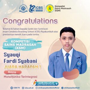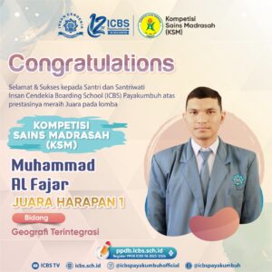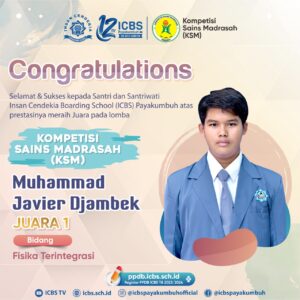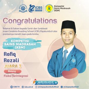 Selamat & Sukses kepada Santri SMA IT Insan Cendekia Boarding School (ICBS) Payakumbuh atas prestasinya meraih Juara pada Lomba “Kompetisi Sains Madrasah (KSM)