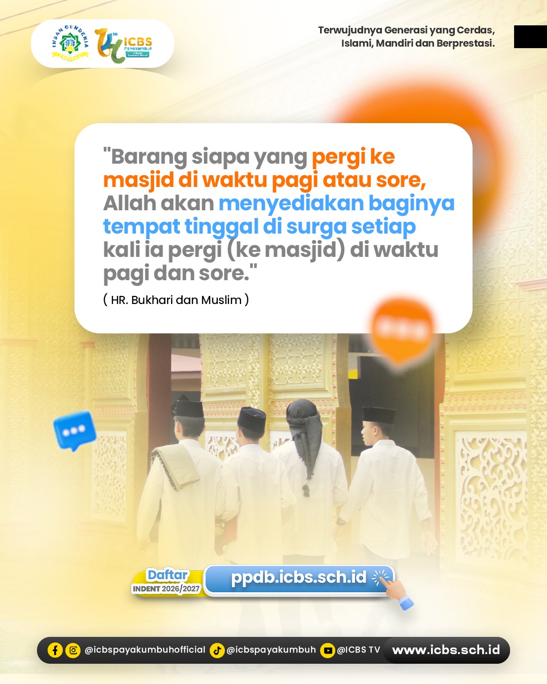 Setiap langkahmu menuju masjid di pagi dan sore hari bukan hanya mendekatkan diri kepada Allah, tapi juga membangun rumah di surga! ✨