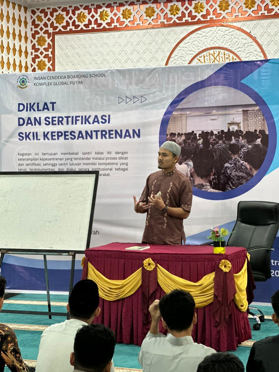 Diklat dan sertifikasi skill kepesantrenan yang digelar di Insan Cendekia Boarding School bukan sekadar pelatihan teknis ibadah. Lebih dari itu, kegiatan ini dirancang sebagai ruang pembentukan cara berpikir dan kesadaran santri dalam memandang peran dirinya di tengah masyarakat. Salah satu materi yang menjadi penopang penting dalam tujuan tersebut adalah Daurah Siyasah wa Tsaqafah, yang dibawakan oleh Ustadz Habib Hidayatullah, B.Sh., pengajar kelas TIMTENG.