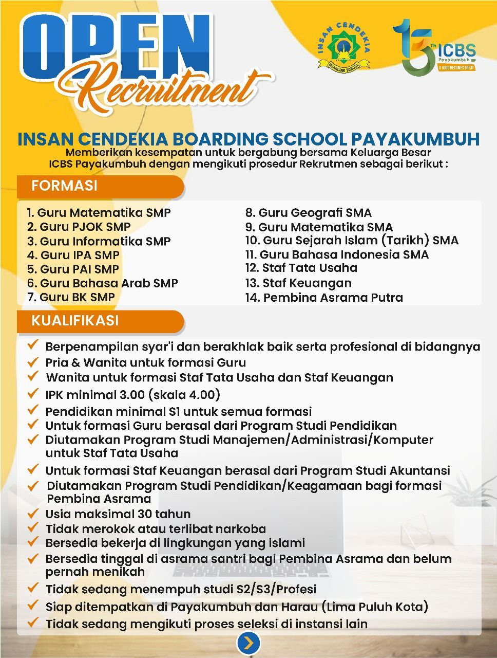 Let’s be a part of Big Family Insan Cendekia Boarding School (ICBS)!