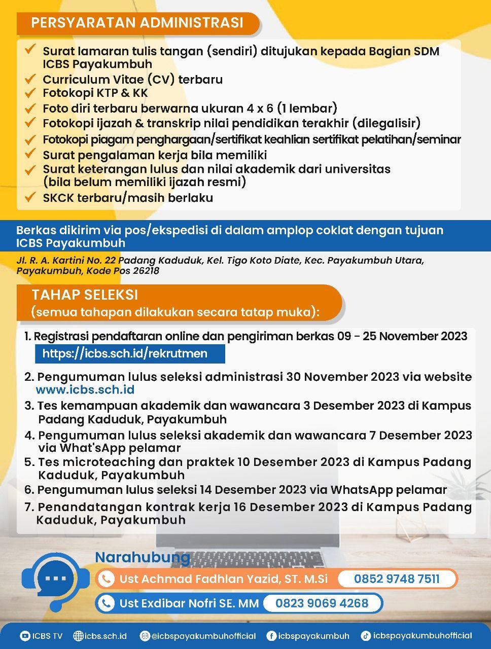 Penerimaan Guru dan Karyawan ICBS Payakumbuh