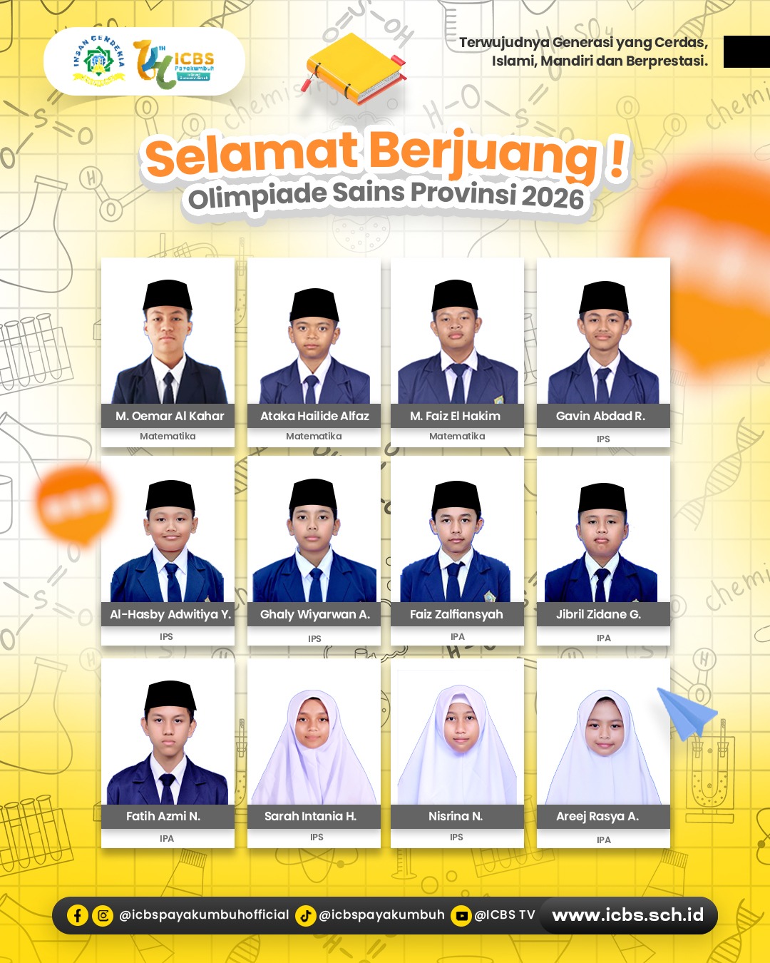 Doa terbaik untuk para santri hebat SMP IT ICBS Payakumbuh yang akan berlaga di Olimpiade Sains Provinsi 2026!