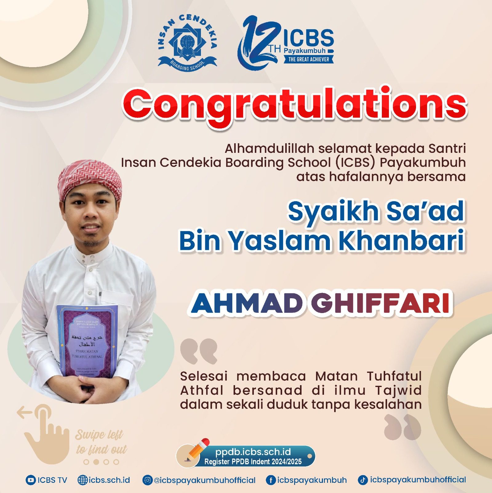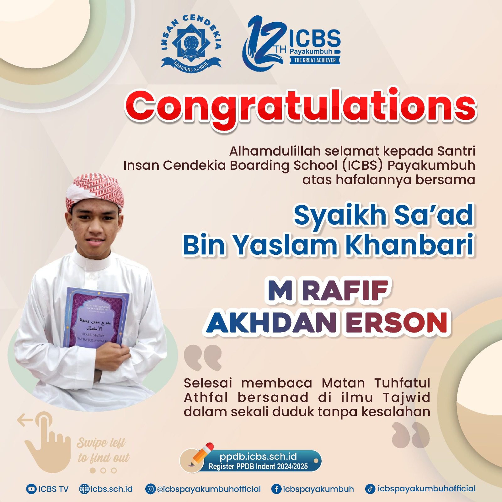 Selamat & Sukses kepada Santri Insan Cendekia Boarding School.