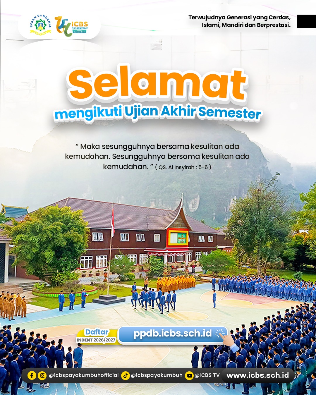 Semangat menempuh ujian, para pejuang ilmu ICBS! ✍ Ingat, ujian bukan hanya soal nilai, tapi juga proses belajar, kejujuran, dan usaha terbaik. Jangan lupa berdoa, jaga kesehatan, dan tetap percaya …