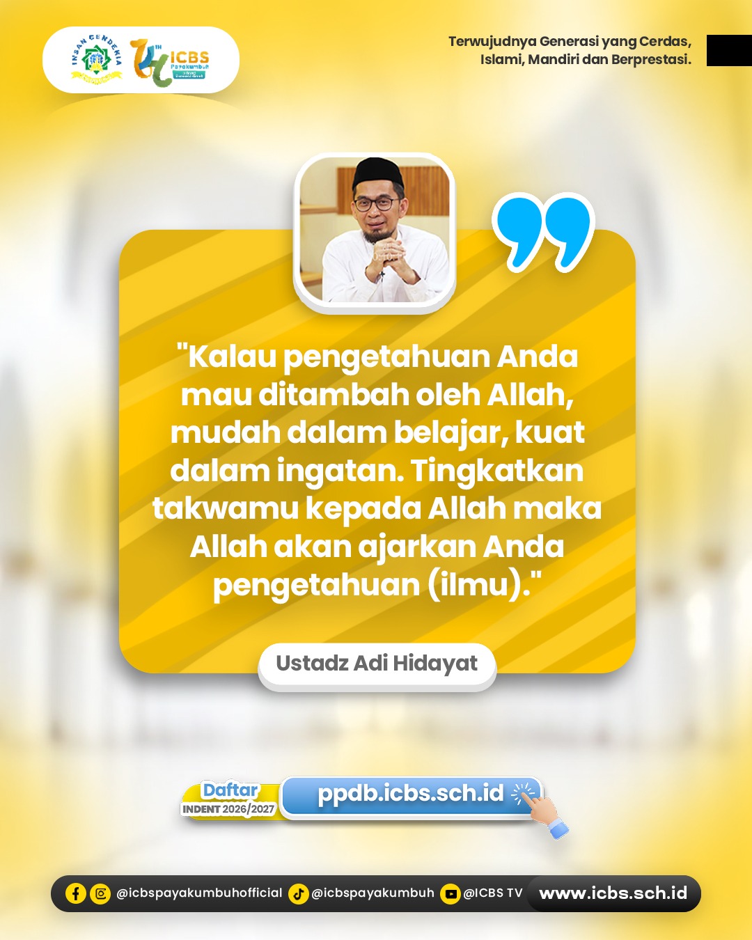 “Kalau pengetahuan Anda mau ditambah oleh Allah, mudah dalam belajar, kuat dalam ingatan. Tingkatkan takwamu kepada Allah maka Allah akan ajarkan Anda pengetahuan (ilmu).” — Ustadz Adi Hidayat حفظه الله …