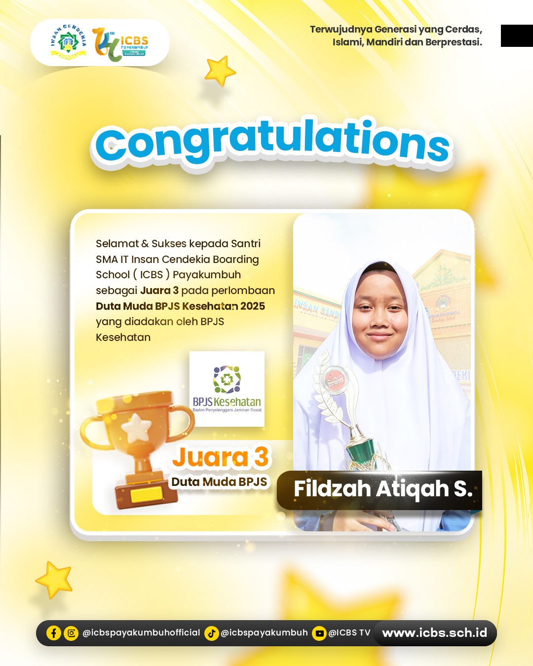 Siswa SMA IT Insan Cendekia Boarding School Payakumbuh kembali menorehkan prestasi yang membanggakan Dalam ajang Duta Muda BPJS Kesehatan 2025 yang diselenggarakan oleh BPJS Kesehatan, Fildzah berhasil meraih Juara 3 …