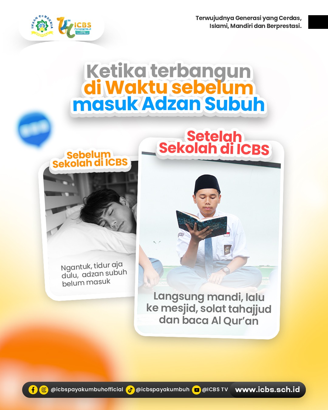 Sebelum sekolah di ICBS: “Duh ngantuk… tidur lagi ah.” Setelah sekolah di ICBS: “Langsung mandi, ke masjid, shalat tahajjud, lalu baca Al-Qur’an.” Inilah pembiasaan yang ditanamkan di ICBS Payakumbuh. Bukan …