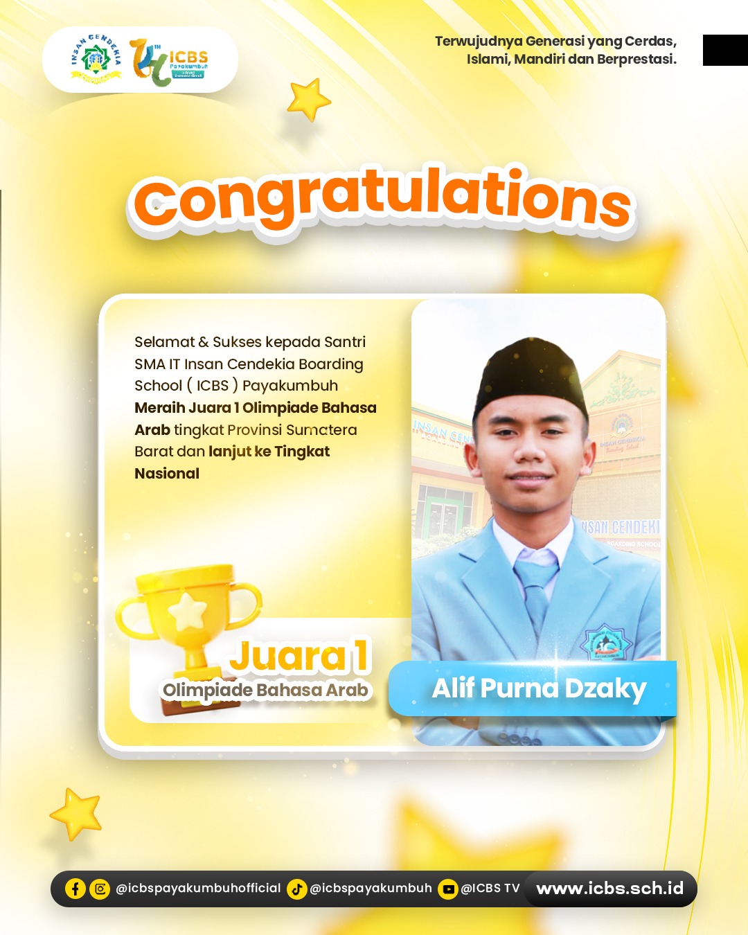 Kabar membanggakan datang dari SMA IT ICBS Payakumbuh! Salah satu santri terbaiknya, Alif Purna Dzaky, resmi dinobatkan sebagai Juara 1 Olimpiade Bahasa Arab (OBA) Tingkat Provinsi Sumatera Barat 2025. Tidak …