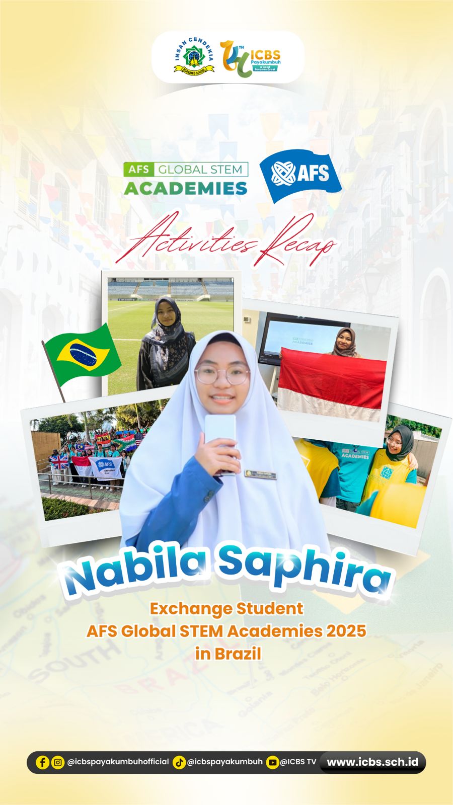 Alhamdulillah, Kabar gembira dari Santri SMA IT ICBS Nabila Saphira yang telah menyelesaikan Sort class internasional di Brazil Kembali salah satu santri ICBS mengikuti program internasional program pertukaran pelajar AFS …